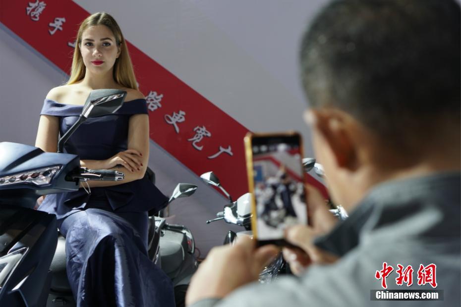 5月9日,主题为“物竞全球、天择无锡”的中国无锡国际电动车展览会在无锡太湖博览中心开幕。展会上,多位貌美高挑女模成为“香饽饽”,随各类电动车同台亮相吸引人气。这些登台助阵的靓丽模特气势一点不输各类豪华汽车大展。据悉,无锡国际电动车展览会集中展示了电动车行业最新技术发展、最新设计款式、最新时尚外观的电动车产品及零部件,共有200多家国内知名电动车品牌集体亮相展会。孙权摄