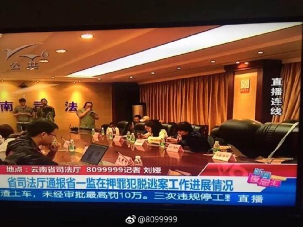 图为云南省司法厅通报省一监在押罪犯脱逃案工作进展情况。
