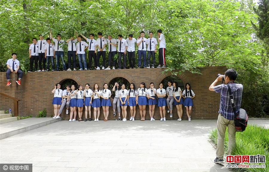 2017年5月10日,西安,大部分的拍摄场景都是事先踩点和规划,也有许多是临时安排,使得班级之间的照片有一定的差异性。李晖/视觉中国 摄