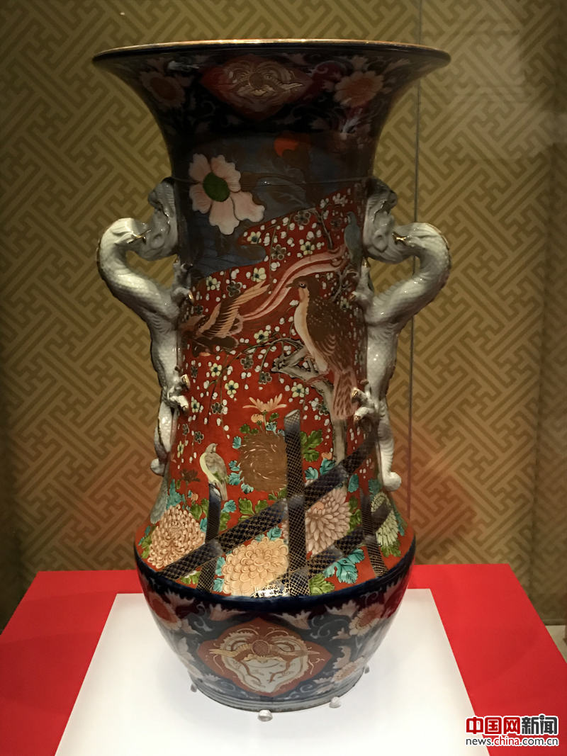 洋瓷五彩加金双龙耳卷口瓶 (日本 18世纪) 中国网 苏向东/摄