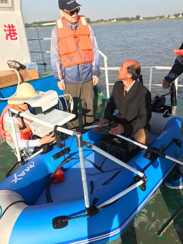 六点十几分,在经度:118.0751180,纬度:31.2167990,三次发现、看到“白鱀豚”拱型越出水面并露出鳍背的情景,由于所在位置接近长江主航道,且豚的群体也向主航道驶近,科考队员担心惊扰豚群,以及主航道大轮船给豚群带来伤害,科考队小艇立即返回出发点。