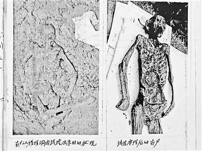 古尸身上的丝绸被扯碎后的照片