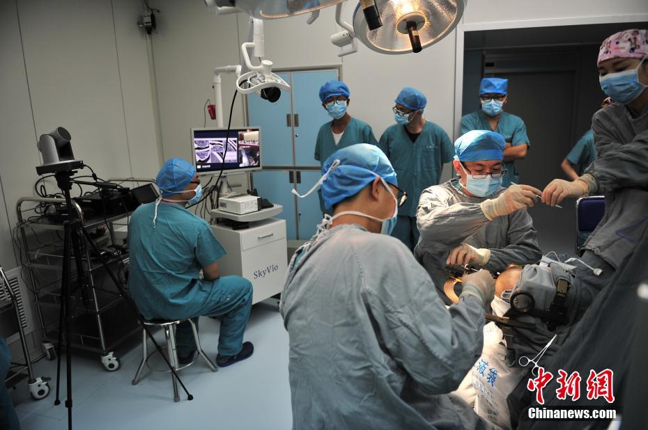5月14日,手术现场实时直播。当日,昆明三博脑科医院的神经外科专家,通过医学专用网络平台进行手术直播,向医疗同行展示癫痫、垂体瘤的治疗,并详细讲解手术的重点和注意事项,重点对显微手术技术、手术入路、术后管理进行细致剖析。中新社记者刘冉阳 摄