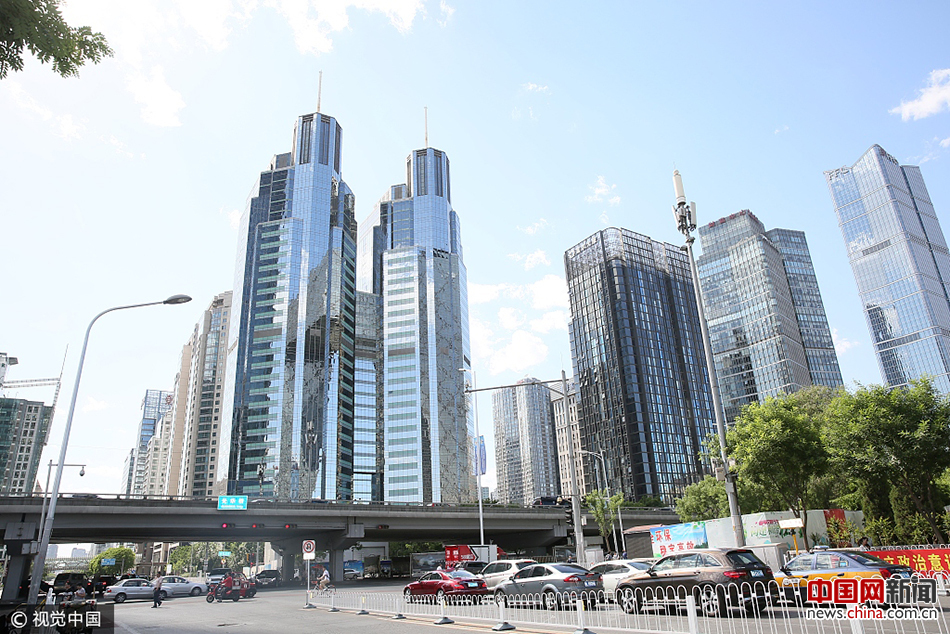 2017年5月14日,北京,图为蓝天白云下的CBD光华桥。千龙图像库于颖/视觉中国
