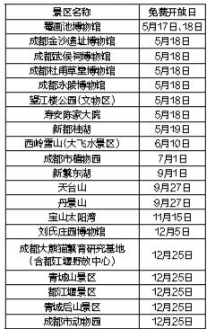 2017年成都市利用公共资源建设的游览参观点免费开放日