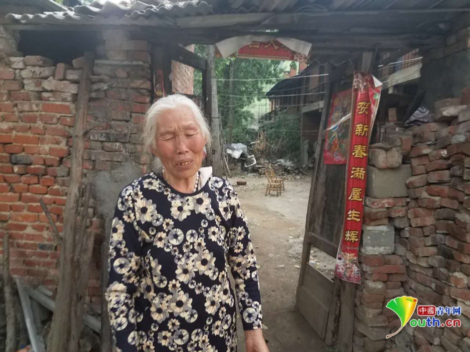 田自阁老伴李桂荣,身后是他们现在居住的中原厂旧房
