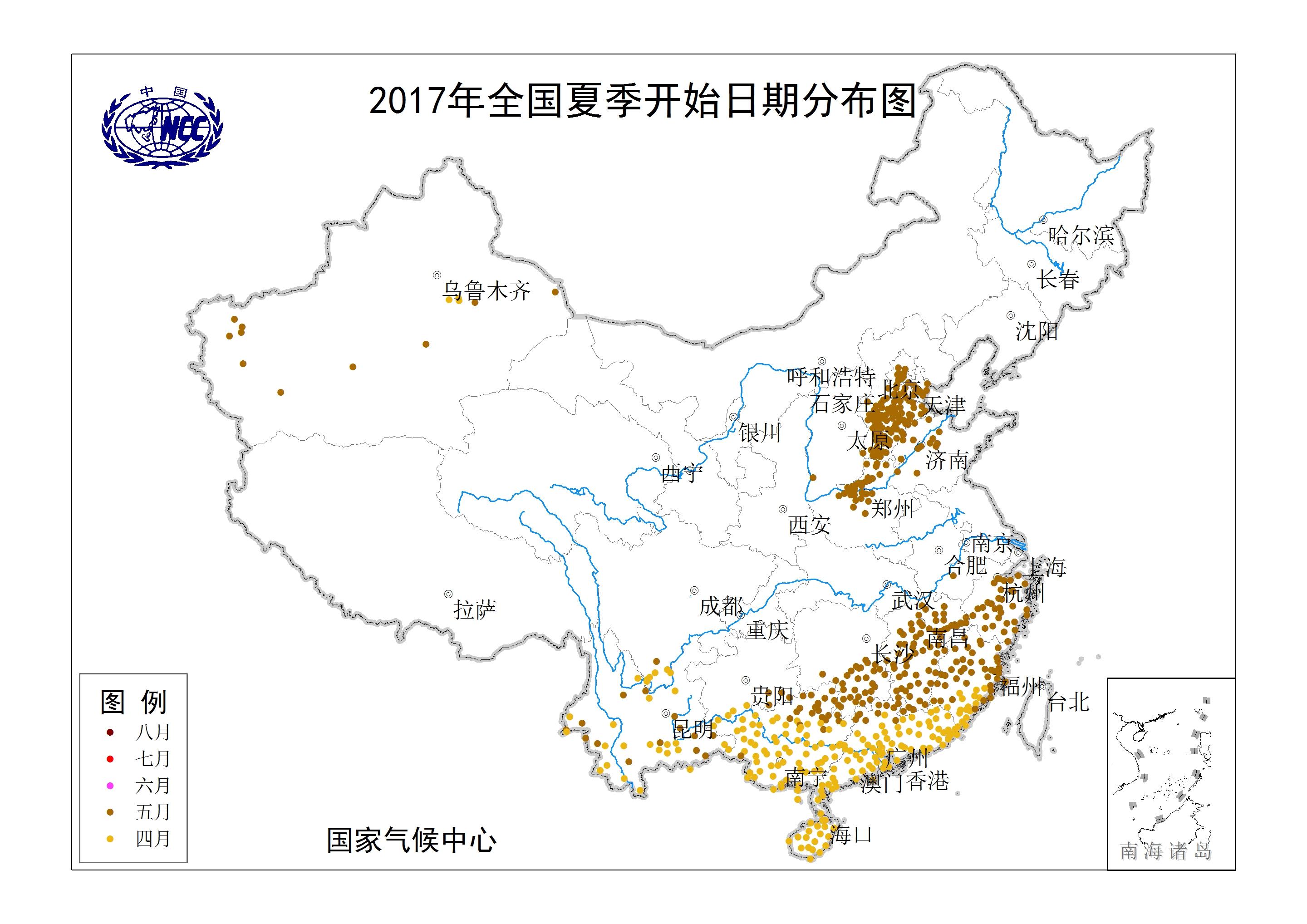 何立富:入夏标准是连续5天日平均气温高于22℃,第一天即为入夏日期。从今年气候条件来看,4月以来,我国大部地区气温持续偏高,季节进程加快。4月,华南大部及云南南部率先入夏,5月以来,华北东南部、黄淮北部、江南南部和东部、华南东北部等地均已入夏。