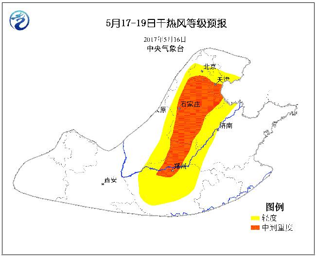 何立富:此次高温天气对农业影响较大。一方面,前期由于内蒙古东部、华北等地降水比历史同期明显偏少,一些地区气象干旱程度达到重度,而此次高温天气正好出现在干旱区域,会使得土壤水分蒸发加快,加剧旱情的发展。另一方面,目前华北、黄淮冬小麦正处于开花授粉和灌浆的产量形成关键阶段,北京、天津、河北、河南、山西、山东北部等地出现持续晴热,空气相对湿度小,午后风力一般大于3米/秒,加之部分地区土壤墒情偏差,这就导致冬麦区将出现干热风天气。16日,河南省发布了干热风橙色预警;18日至19日,河北中南部、河南北部部分地区最高气温可达37℃左右,还将出现中到重度干热风天气,对冬小麦灌浆不利,将导致冬小麦灌浆速率下降,降低籽粒重量。