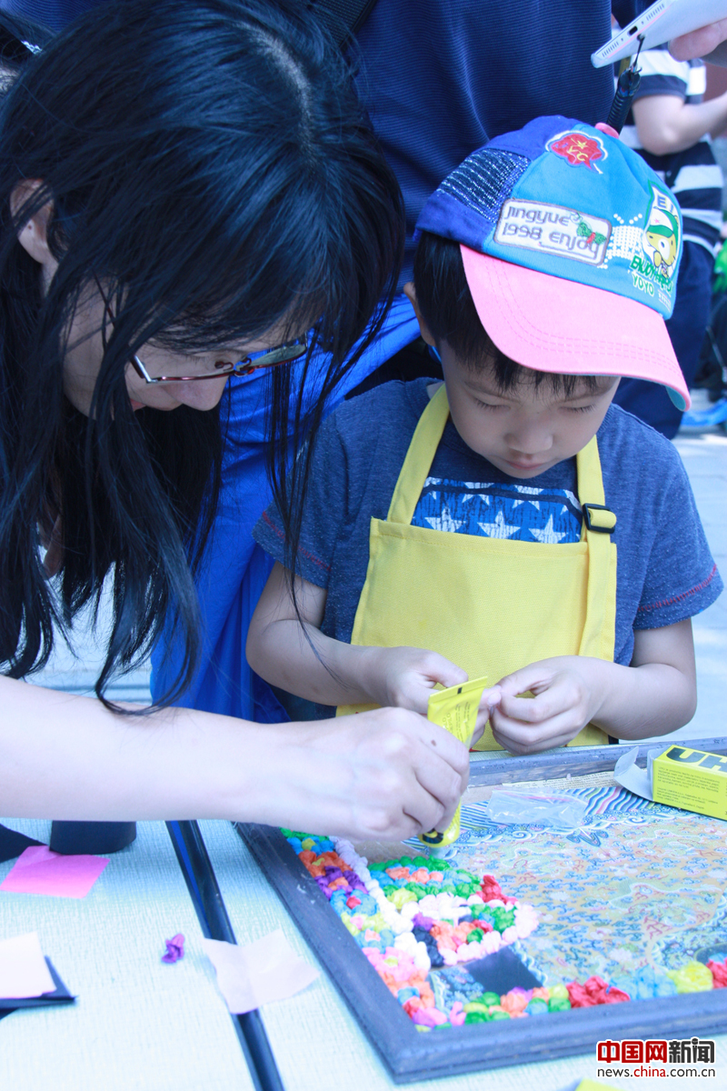 5月18日,国际博物馆日,故宫博物院在故宫箭亭南侧广场举办“让龙袍亮起来”、“让建筑动起来”、“让瓷母时尚起来”3场文创手工活动。瞧,小朋友正在认真地“绘龙袍”。 摄影 中国网 苏向东