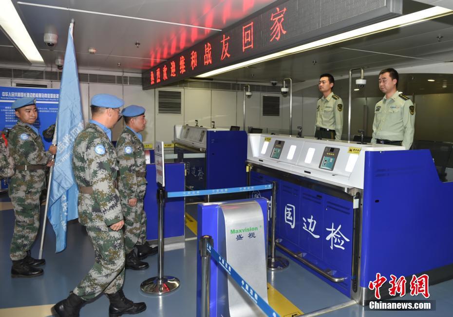 5月18日,中国第四批赴马里维和部队第一梯队200名官兵顺利完成联合国赋予的维和任务后,乘专机抵达长春龙嘉国际机场。陆军第78集团军与驻地政府领导共同举行仪式,热烈欢迎蓝盔勇士凯旋。图为大屏幕上打出欢迎语。中新社发杨再新 摄