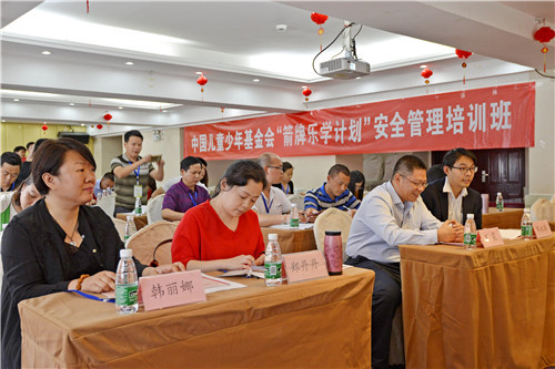 中国儿童少年基金会“箭牌乐学计划” 安全管理培训班历时5天,18所学校的校长、分管安全副校长、安办主任和安全教师代表参加了安全管理培训班,学员在培训班上学习到开展安全教育的方式方法,以及逃生绳结系打、消防灭火、烟道逃生、急救互救、高层逃生、溺水救援等方面的应急技能。