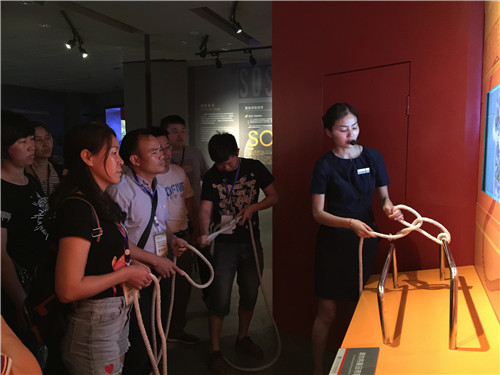 培训班学员体验逃生绳结系打