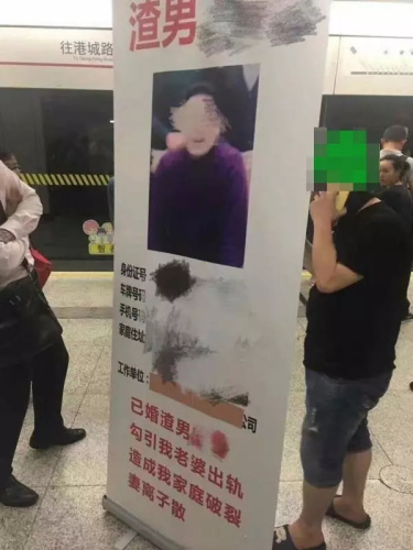 “渣男”“出轨”“家庭破裂”……一张写满了个人信息的易拉宝,昨晚出现在上海轨道交通6号线世纪大道站台上。这张照片旋即通过论坛、微博广泛传播,引发网友围观。