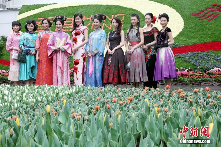 香港特区即将迎来回归祖国20周年。过去20年间,香港人共同努力,抓紧、创造机遇,在多个领域取得进展。保持璀璨的东方之珠。图为维园花卉展览上,女艺人亮相拍照。中新社记者洪少葵 摄