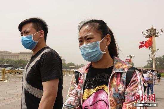 5月4日,北京遭遇沙尘过境,城区天空一片昏黄,局地PM10浓度破2000,空气质量达严重污染级别。中新社记者 崔楠 摄
