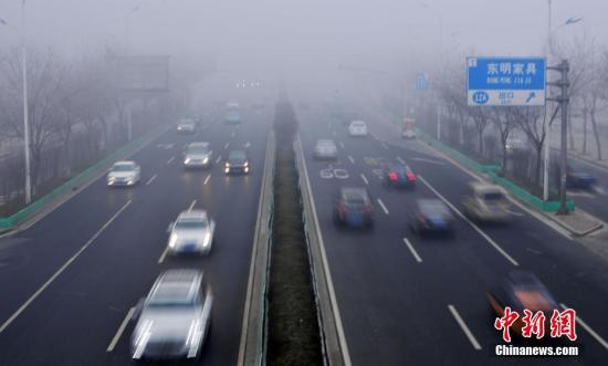 资料图:1月4日,河北气象台同时发布大雾红色预警和霾橙色预警。图为石家庄遭遇严重雾霾天气。 中新社记者 翟羽佳 摄
