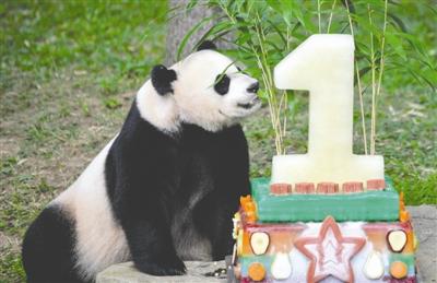 去年8月20日,华盛顿国家动物园,由于过1岁生日的贝贝在午睡,吃生日蛋糕便由熊猫妈妈美香“代劳”了新华社发