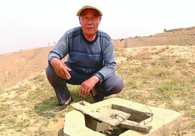 他用粗糙的大手摩挲着水泥窖台,上面依稀可辨的字迹,显示这眼水窖建成于1997年7月11日。