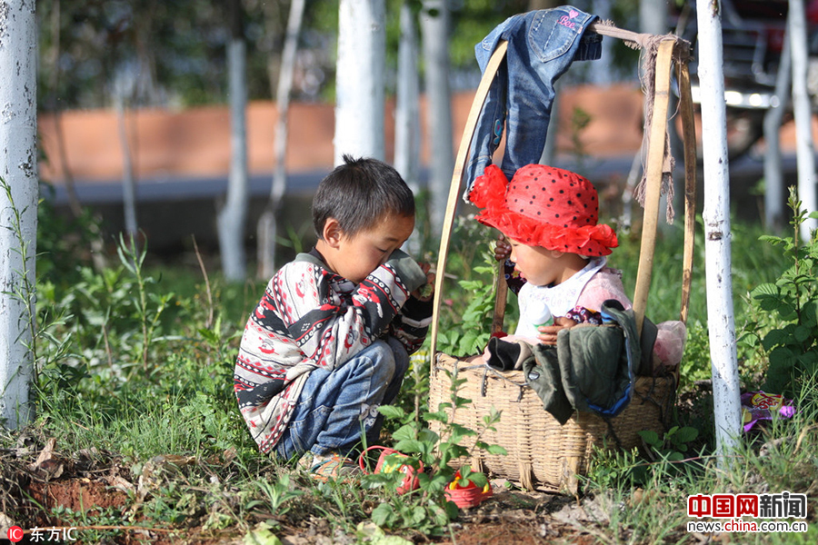 2017年5月31日报道,清晨,在云南省通海县的蔬菜基地,晶莹的露水还没从菜叶上掉落,菜地里已经一派忙碌的场景。数千余名从事蔬菜收割的打工者正在田间砍菜、挑菜、装菜。而此时,就在他们不远处,他们的孩子正三五成群,坐在被放置在菜坑上的竹篮里,等着父母忙完前来“哺育”。有人把这些孩子叫“竹篮娃娃”。这些孩子大都来自农村,随父母从外地来通海县做蔬菜采收工作,由于蔬菜采收工作地不确定,收完一块菜地很可能要奔波数公里才能到下一工作地。孩子们也只能随着父母在菜单间过着“游牧”的生活。小兵杯具/东方IC
