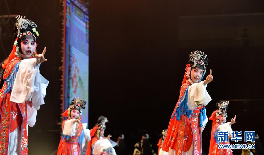 5月31日,奋斗小学学生在艺术节上表演《京剧联唱》。当日,北京市奋斗小学举行艺术节,迎接“六一”国际儿童节。 新华社记者 尹栋逊摄