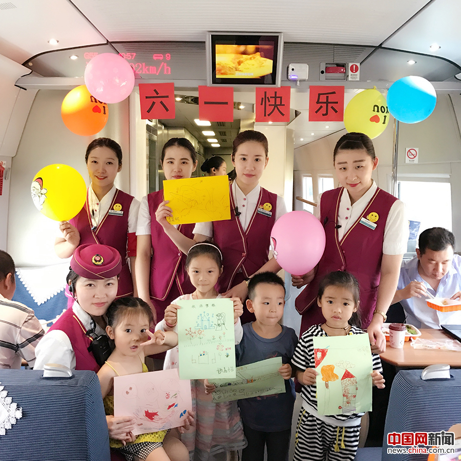 六一国际儿童节,为营造“文明、健康、和谐”的乘车氛围,北京客运段高铁二队值乘的G55次列车上特别推出“我们一起过六一”的亲情服务活动。