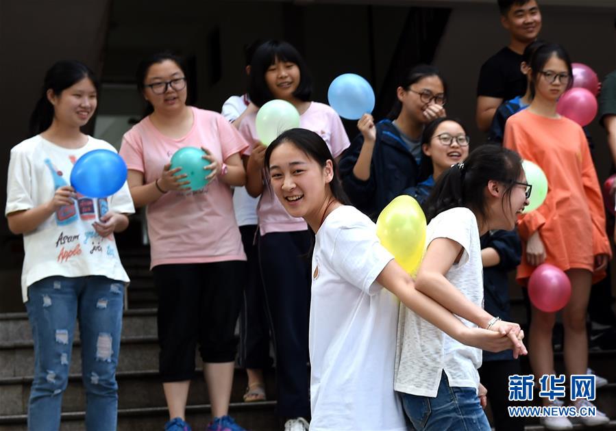 6月2日,浙江省义乌市第四中学高三学生进行夹气球跑比赛。高考临近,各地高中开展形式各异的减压活动,让高三学生在紧张备考之余放松身心,以平和心态迎接高考。新华社发(龚献明 摄)
