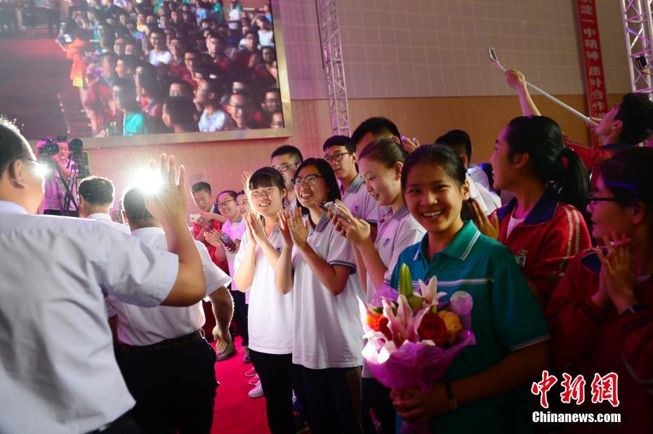老师入场时伸手致意,学生鼓掌欢迎。 中新社记者 刘文华摄