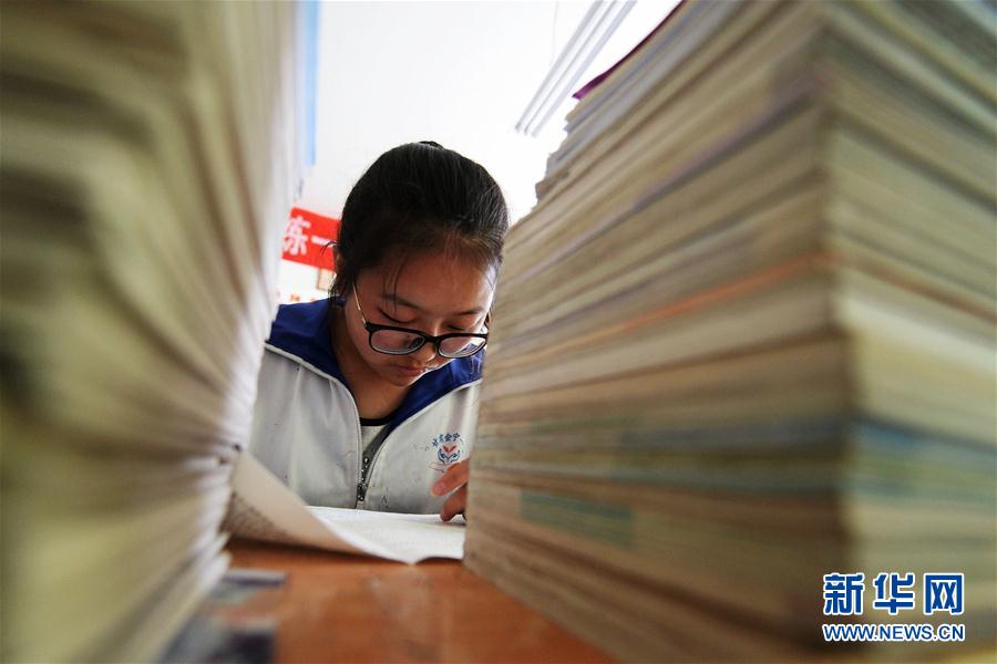 王琼在教室里做题,进行高考前最后的冲刺(5月25日摄)。 新华社记者 陈斌 摄