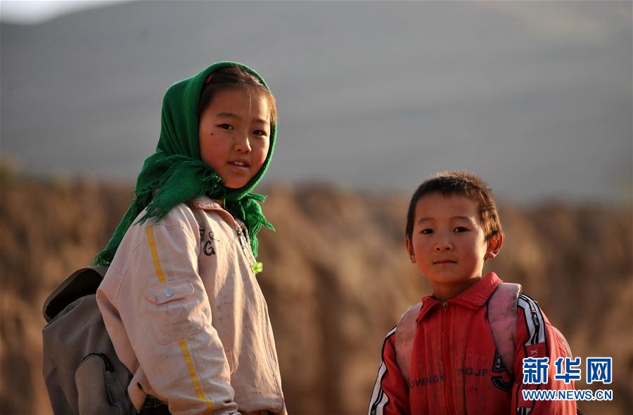 8年前,还在上小学五年级的王琼(左)和弟弟放学后走在回家的山路上(2009年10月23日摄)。 新华社记者 聂建江 摄