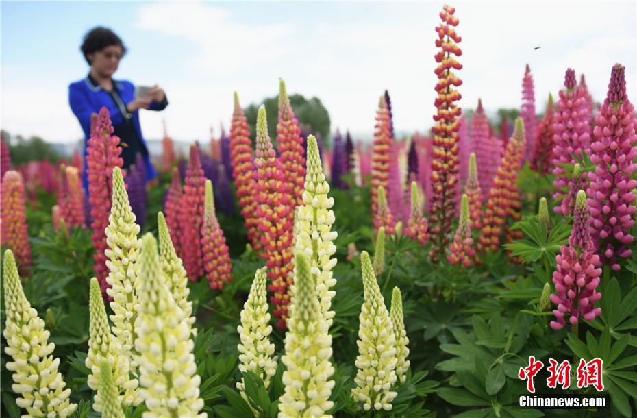 游客在鲁冰花“花海”中赏花拍照。 史有东 摄