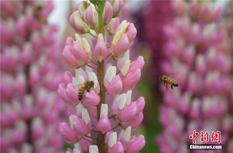 鲁冰花的盛开,也引来小蜜蜂争相采花蜜。 史有东 摄
