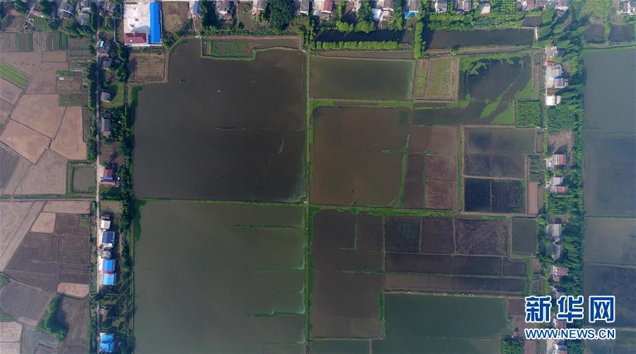 这是6月7日拍摄的湖南南县明康龙虾养殖专业合作社的稻田。新华社记者 李尕 摄