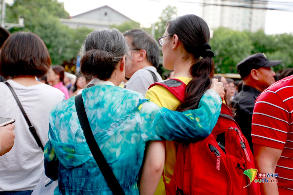 一位考生家长搂住走出考场的孩子。中国青年网记者 邹畅 摄
