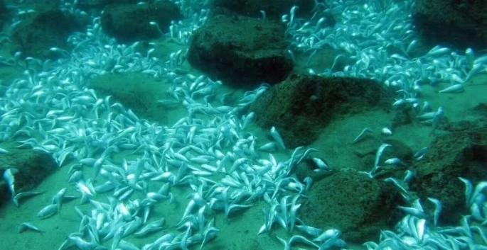 8日上午8点多,潜水爱好者吴伟和另外两名潜水者在大深湾海域发现了“大约两百斤的死鱼”。