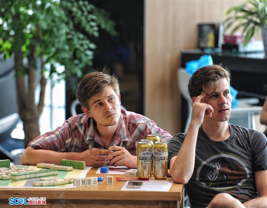 6月10日,成都市高新区天府新谷17楼,来自美国、英国、法国、德国、南非、西班牙等国家的16位外国友人,在这里学习打麻将。田为 文/图图片来源:四川在线