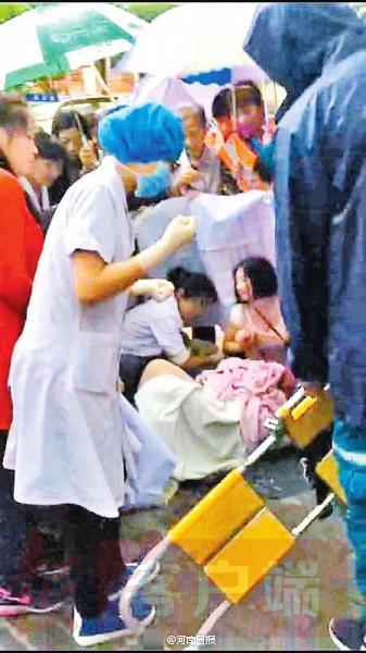 孕妇雨中街头临产