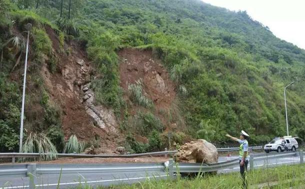 发现险情后,高速公路二大队民警立即赶往现场。在现场民警发现,因13日凌晨持续降雨,古棠隧道入口处有少许积水,边坡滑坡约30立方米,滑落在应急车道上,边坡土质疏松,随时可能再次发生滑坡现象。为确保安全,民警迅速在来车方向摆放锥筒进行警戒,封闭快车道及应急车道,同时联系营运部门清除路面上散落的泥夹石,将巨石尽快地搬离高速路面。