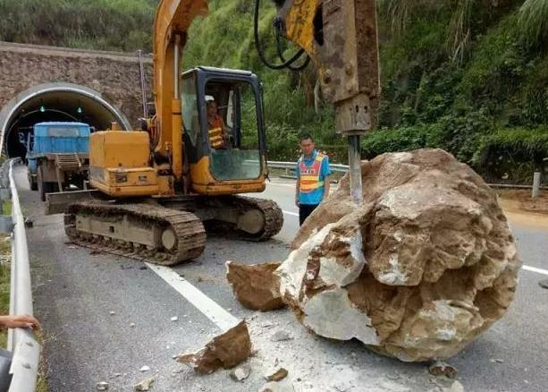 11点左右,应急车道侧的泥夹石已经清除完毕,由于巨石体积过大,路政部门联系了大型清障车将巨石碎掉后,把碎石搬离高速路,17点30分左右,路面已全线恢复通车。