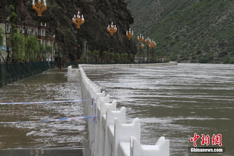 灾情发生后,丹巴县第一时间启动一级防汛响应,发布暴雨红色预警信号。公安、武警、消防、应急民兵、县级机关45岁以下男职工集结待命,国土、水务、民政等部门积极调配物资以备应急所需,各沿河乡镇加强对临河村、低洼地带、主要公路干线等重点部位的巡查力度,转移疏散人员5000余人,确保民众生命财产安全。图为丹巴县城临河人行道被淹没。丹巴轩 摄