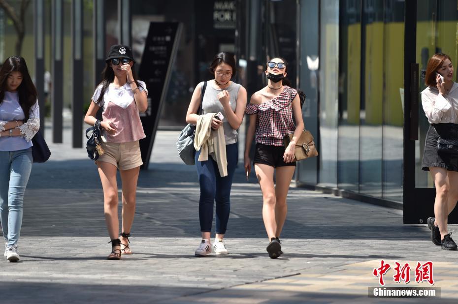 一大早,太阳就已火力全开,在京城启动了“高烤”模式,开窗就能感受到一股热气扑面而来。图为北京三里屯街头美女清凉出行。 中新网记者 金硕摄
