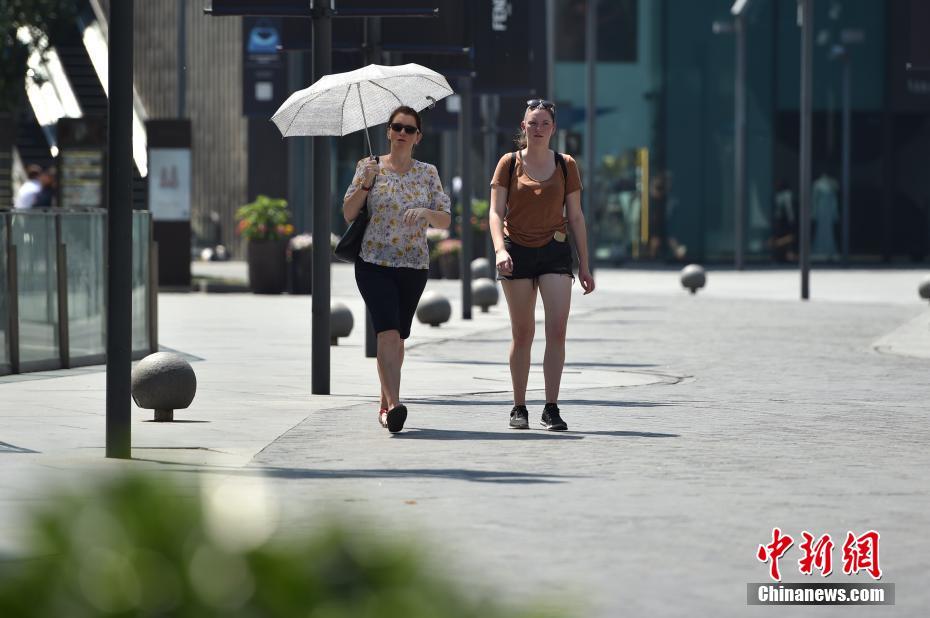 接近中午时分,若是毫无遮挡出行,让滚烫的阳光“砸”在身上,“可以感觉到慢慢被烤熟”。图为北京三里屯街头民众撑伞遮阳。 中新网记者 金硕摄