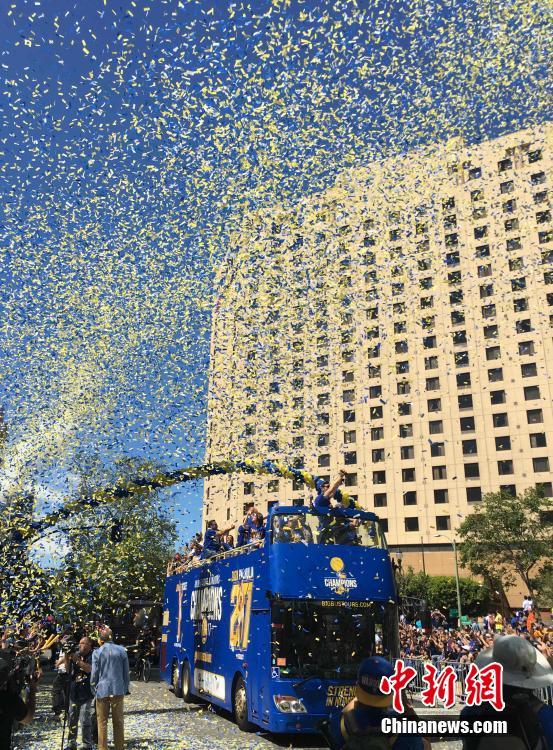 美国NBA勇士队举行盛大游行庆祝夺冠