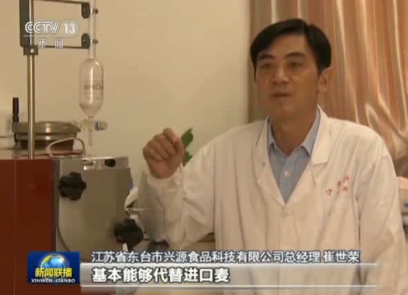 江苏中部的里下河流域,麦收已近结束,收购正进入高峰,在东台市的一家面粉厂,与收购同时展开的还有一项特殊实验:用面粉吹气球,这测试的是小麦的面筋含量。结果显示,这种弱筋小麦,面筋含量低,已经达到了制作糕点专用粉的标准。