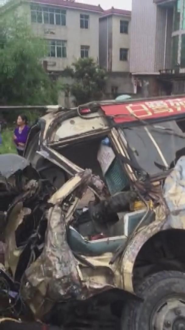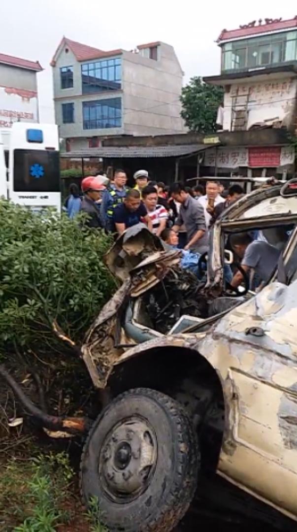 昨天(6月16日)中午12时50分左右,江西吉安市吉州区长塘镇石岩岭村附近路段发生交通事故,一辆中巴车与货车发生碰撞侧翻。