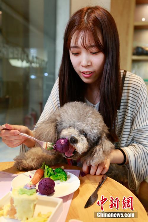 如今人们逐渐把宠物看作是家庭成员的一份子,想要陪伴他们更多,但总免不了有些“禁止宠物入内”的场合。在浙江杭州就有家咖啡店,专为宠物开设。主人在享用咖啡小食的同时,还能为自家宠物点一份专门准备的营养餐,与它们一同享用悠闲的下午茶时光。图为一位顾客正在餐桌上给自家宠物狗喂食。图/王远 文/张茵