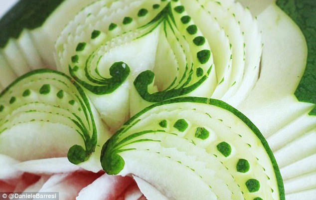 他的雕刻技术一直备受赞誉,犹如魔法一般,将普通的蔬果变成奇异的鸟类、游水的鱼类、绚丽的花朵,以及森林里的动物。他表示自己只要一碰到刻刀,那些充满创意的想法,不经过大脑而直接传送到手中,给予蔬果各式各样的装饰方法。