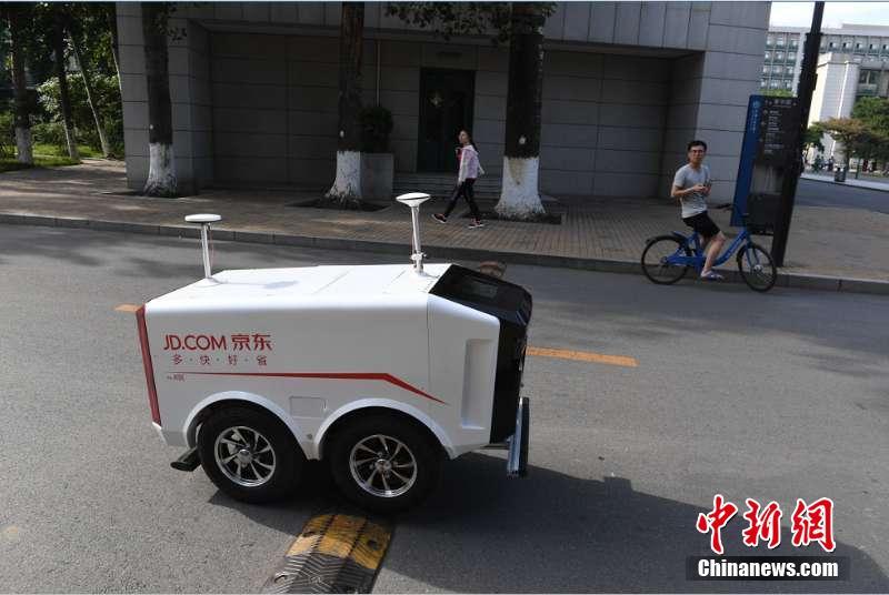 遇到减速带时,无人车已自动识别,正在减速驶过。中新网 宋路易摄