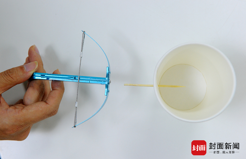 近日,全国多家媒体报道了一款流行语中小学孩子们中的小玩具,外形如同兵器弩,巴掌大小,功能却和真的弩一样,可以发射“利箭”。而且,这种“箭”不难找,就是家里常见的牙签。因此这种玩具也被称为“牙签弩”。这已引起很多家长的关注。19日,记者在成都走访发现,在成华区的多所小学外的小卖部,都发现了这类型的“牙签弩”。