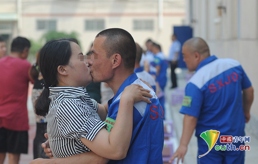 山西戒毒所开放日 戒毒人员与亲人拥吻