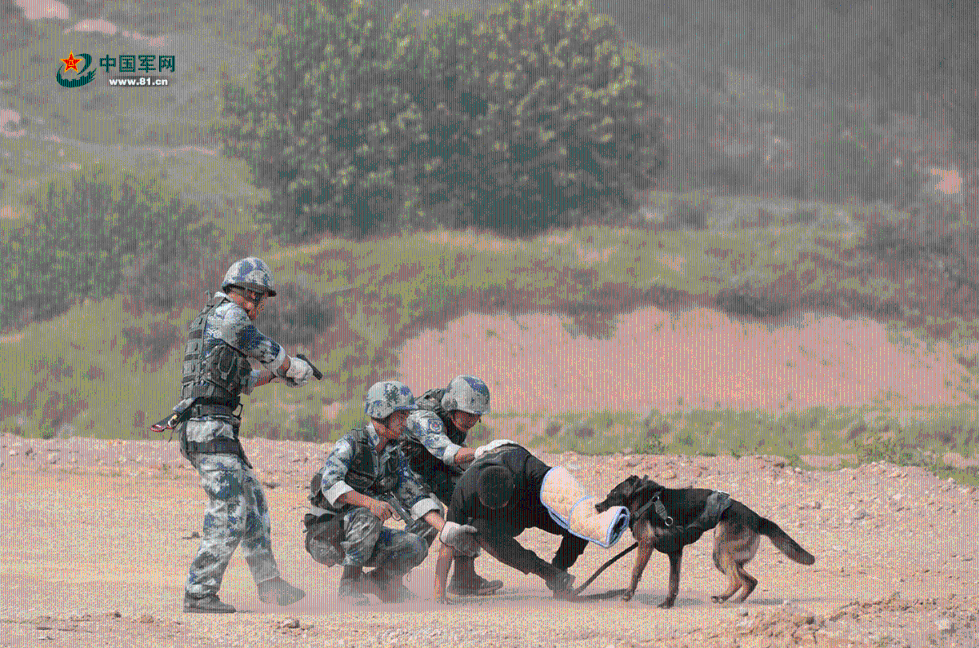 空降兵的反恐演练带军犬"吊威亚"